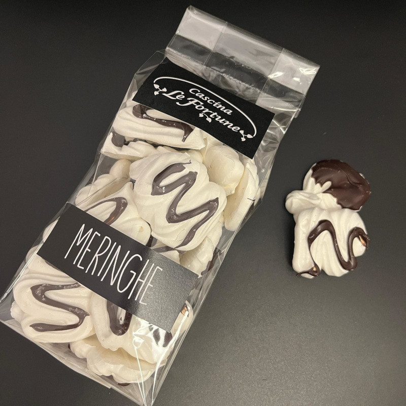Ingredienti: albume d'uovo, zucchero, cioccolato fondente (soia). 100g