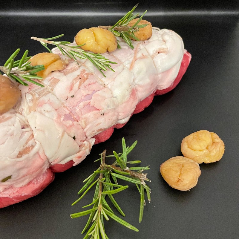 La rolata di Fassone con castagne e prosciutto cotto all'interno, avvolta nel lardo, è un classico intramontabile: carne arrotolata con prosciutto cotto all'interno e pancetta all'esterno, legata a mano, pronta per la cottura. Morbida, succosa e ricca di gusto, è ideale al forno o in casseruola. Una preparazione tradizionale che porta in tavola tutto il sapore del Piemonte. Composta da prosciutto cotto all'interno e pancetta all'esterno.