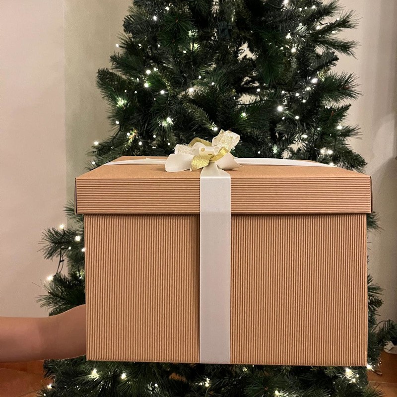 Elegante scatola riutilizzabile contente un mix di prodotti di cascina.